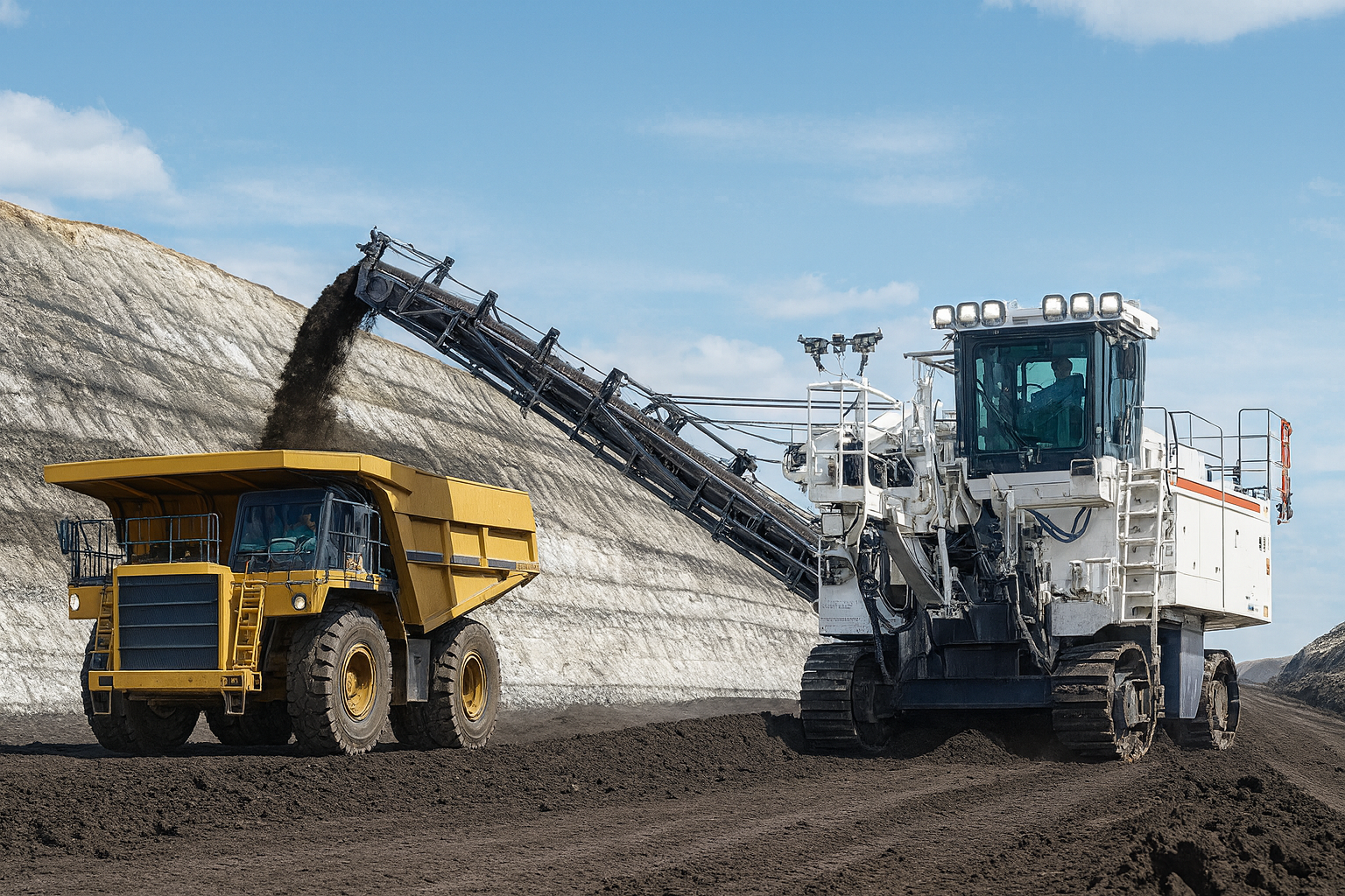 Surface miners cut & crush ore in one operation — high throughput.Crushed ore is transferred via internal chutes under constant attack.